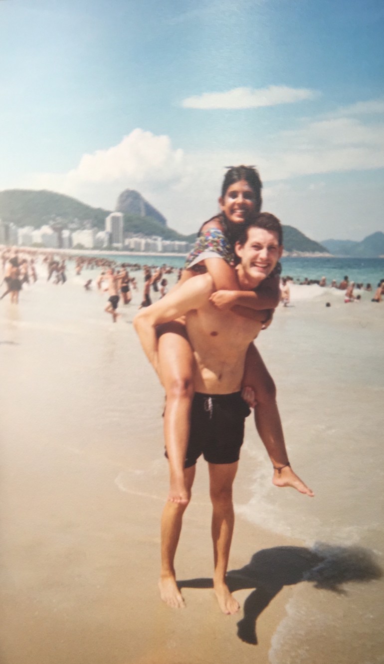 Once we got back to England we were looking through Alan’s things and found Cal and Jimmy’s favourite shirt, that until this point was believed to be from an African football team. When we looked a bit closer, we realised it was the exact same shirt Cal is wearing in the photo above but from the 90s. It was just chance but in a random market in Rio, all these years later, it ended up Cal picked up the exact same samba school shirt.