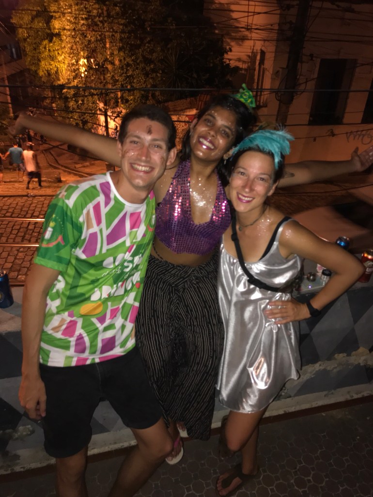 With Rosh still not feeling 100%, we decided to head for Rio a little early and spend a couple of nights recovering in a hotel. Luxuries of a comfy bed, take away Pizza and some of Cal’s dancing brought energy and laughter back to Rosh – post comfort, we were ready for Carnaval! Rosh was on the mend, Cal had practiced the dancing, we reunited with Magda, things were coming together.